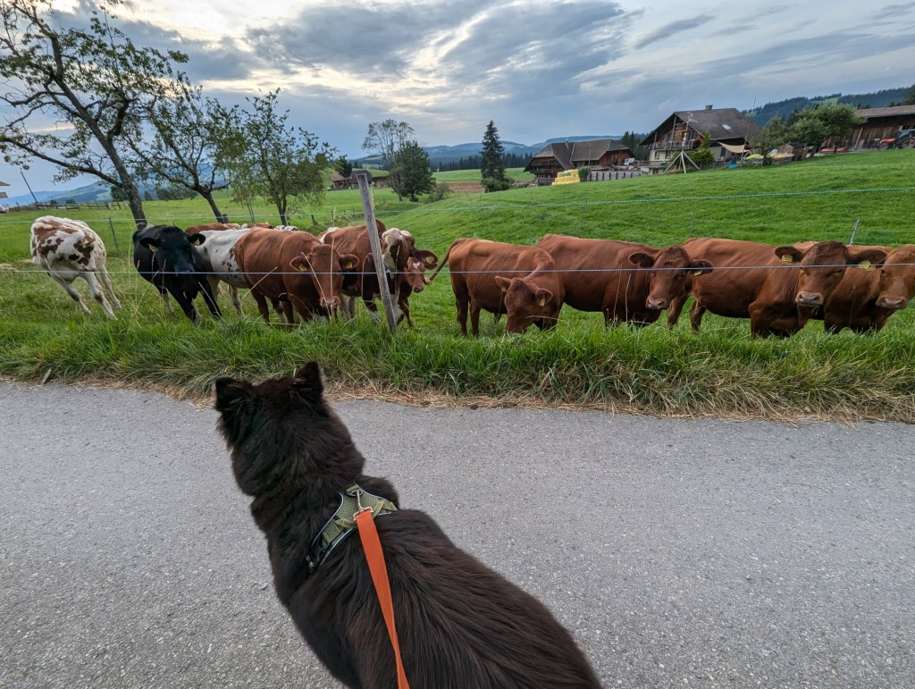 Am liebsten bin ich draussen und geniesse es hier auf dem Land. Es hat immer irgendwelche Tiere zum gegenseitigen Bestaunen.