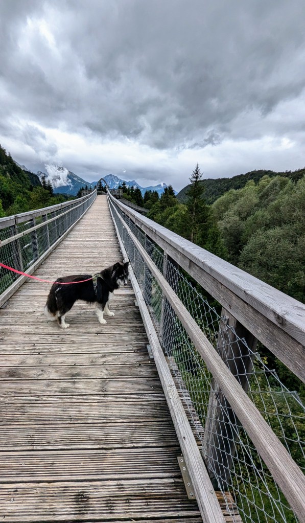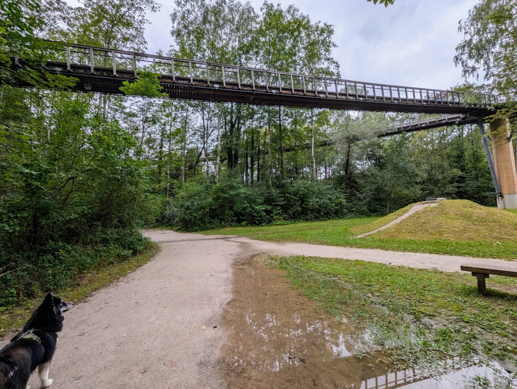 … bin Bähnli gefahren, mutig über Gittertreppen auf Aussichtsplattformen gekraxelt, über Baumstämme balanciert, über einen Baumwipfelpfad hoch oben gewandelt, …