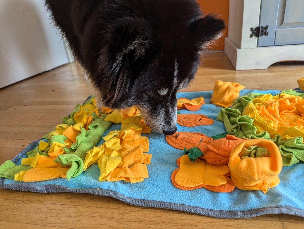 Also im Schnüffeln bin ich stark. Die Schnüffelmatte, mit der gemäss Werbung „der Hund stundenlang beschäftigt ist“, ist in maximal zwei Minuten leergesaugt, alle Leckerlis verschlungen. Natürlich könnte ich mich mit der Matte länger beschäftigen, mit all den flauschigen Stoffteilchen …