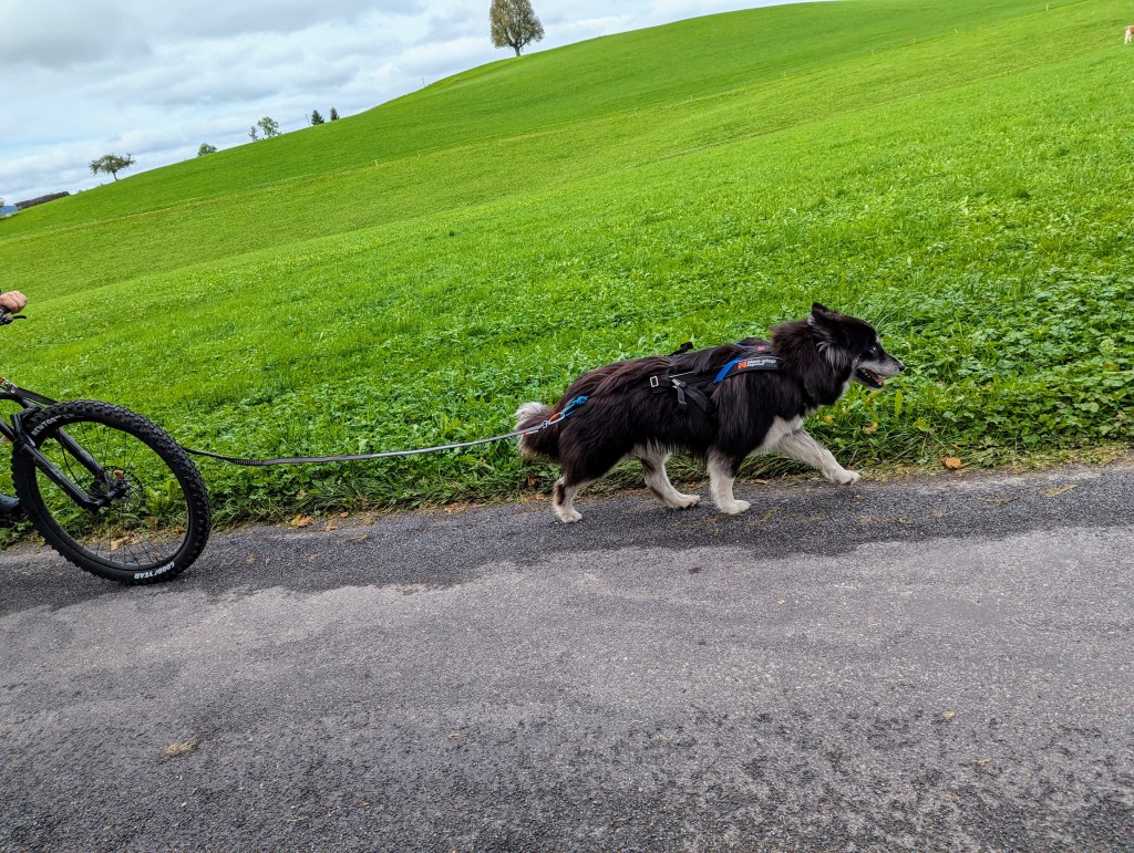 Es gibt ja so viel Neues zu entdecken. Natürlich ist es nett, gemütlich mit meinen Menschen durch die Gegend zu schlendern. Immerhin geht es bei Regen meist etwas flotter vorwärts. Aber heute, das erste Mal mit dem Velo, also da konnte ich mich mal richtig auspowern. Ich finde, für das erste Mal machte ich dabei schon eine sehr gute Figur.