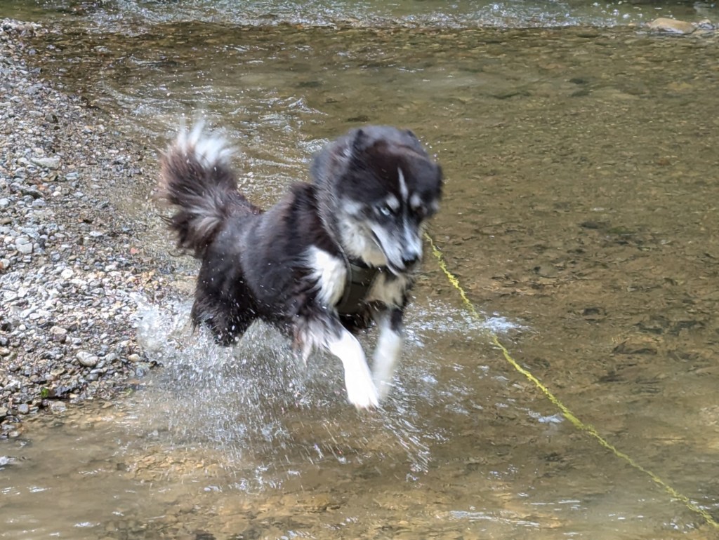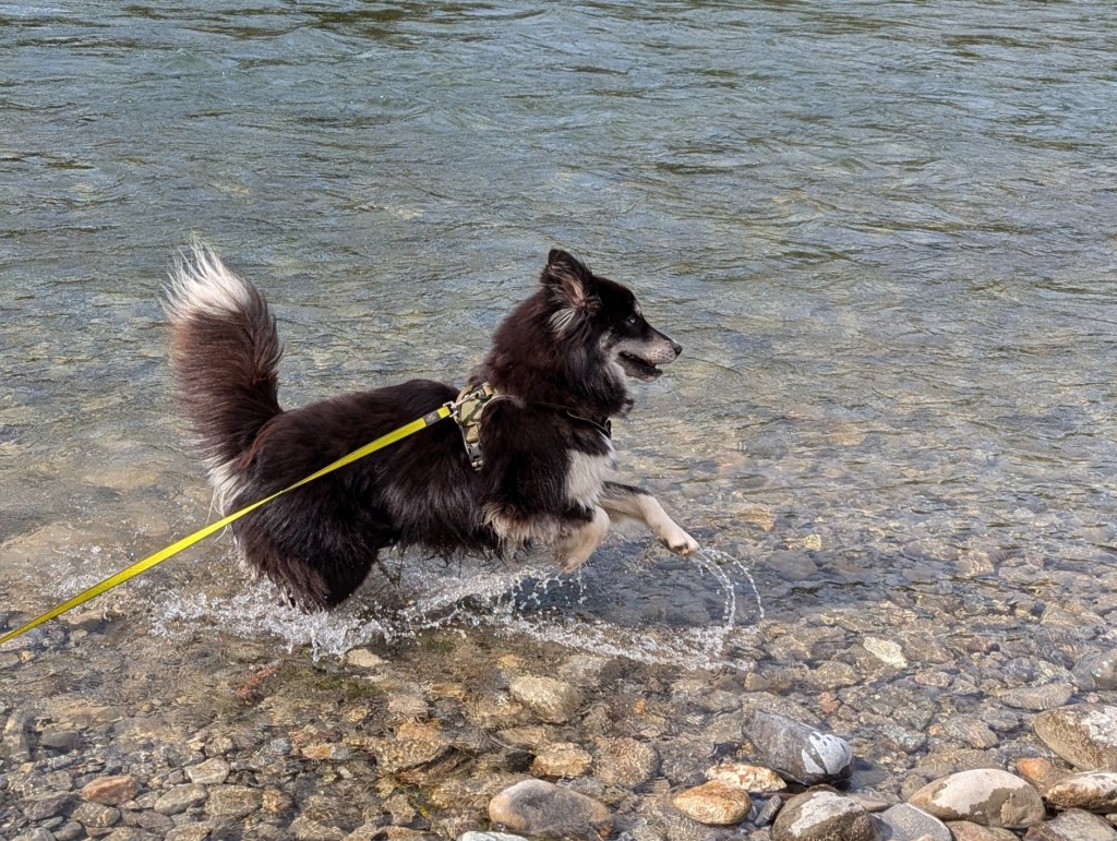 Bei jedem Wetter hüpfe ich freudig ins Wasser und renne wild herum. Da kenne ich fast kein Halten mehr.